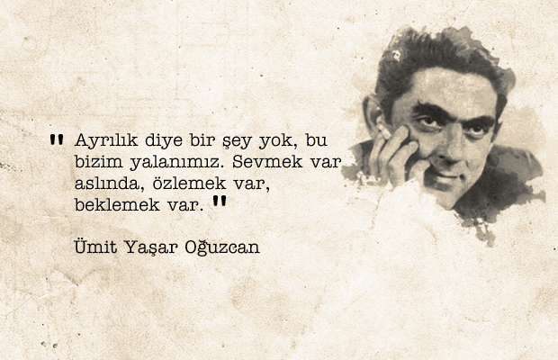 Ayrılık diye bir şey yok. Bu bizim yalanımız. Sevmek var aslında, özlemek var, beklemek var. Ümit Yaşar Oğuzcan