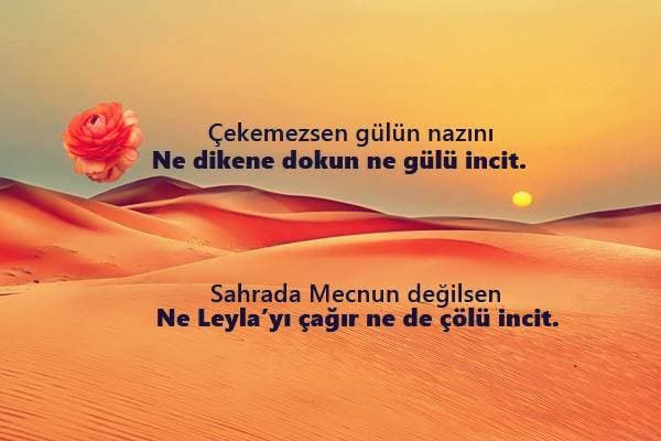 Manşet: Çekemezsen gülün nazını ne dikene dokun ne gülü incit. Sahrada Mecnun değilsen ne Leyla’yı çağır ne de çölü incit.