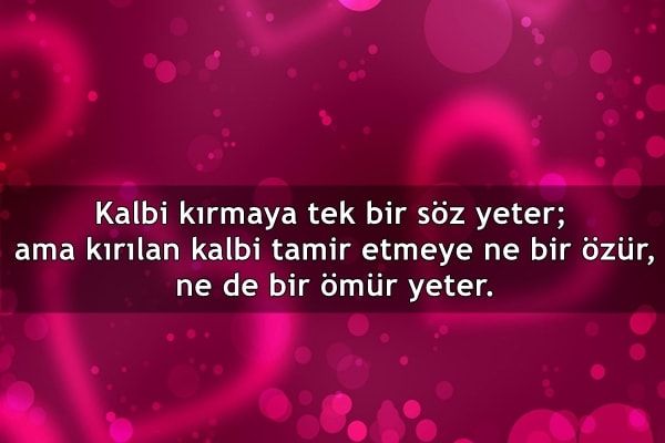Kalbi kırmaya tek bir söz yeter; ama kırılan kalbi tamir etmeye ne bir özür, ne de bir ömür yeter.